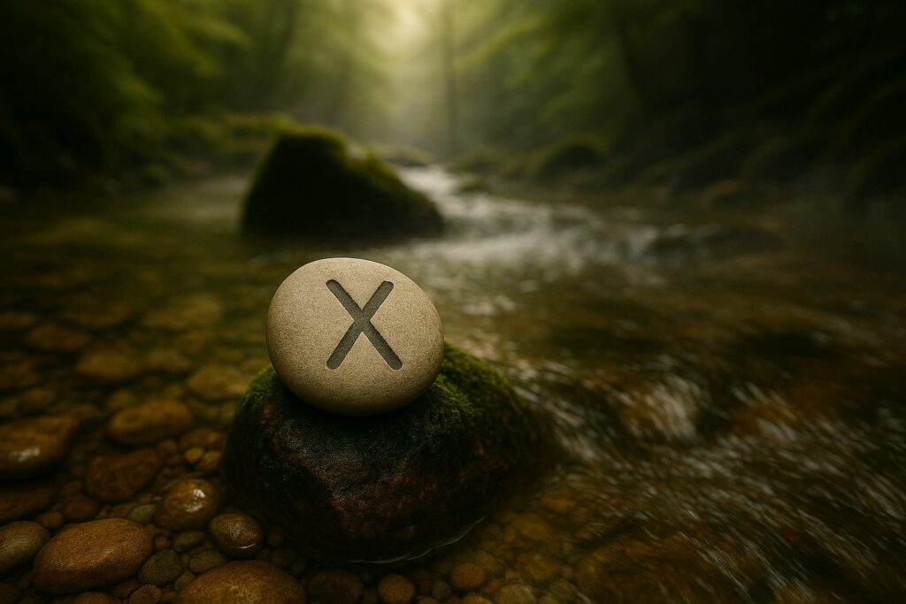 Dans l’alphabet runique nordique, Gebo symbolise le don, l’échange, la réciprocité. Deux lignes qui se croisent en leur centre : ce que je donne rencontre ce que tu offres. Un équilibre parfait.